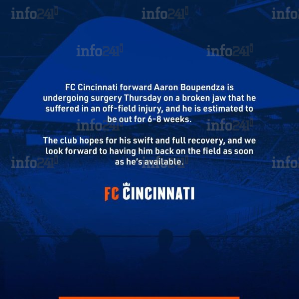 En raison de cette blessure, le club a annoncé que la star gabonaise sera absente des terrains de la MLS pendant une période de 6 à 8 semaines. Le FC Cincinnati a également précisé que le joueur n’était cette fois-ci pas responsable de l’incident qui vaut plusieurs semaines d’indisponibilité. Une nouvelle situation difficile pour le joueur, déjà sous le coup d’une suspension de la part de la Fédération gabonaise de football (Fegafoot) pour ses déclarations controversées contre l’entraîneur Thierry Mouyouma.