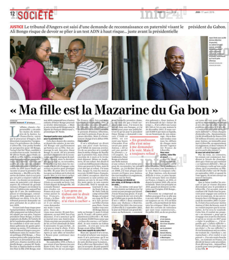 Ali Bongo qui refuserait toujours de voir sa « fille », aurait tenté d’acheter le silence de la mère en l’offrant une maison. Ce qu’elle refusera au détriment d’une Mercedes C180 ! La mère Joyce Gennifer Ondo vivant en France actuellement, assigne le président gabonais en justice. La Chancellerie française, saisie par le procureur d’Angers, doit désormais transmettre l’assignation à la présidence du Gabon, à Libreville.