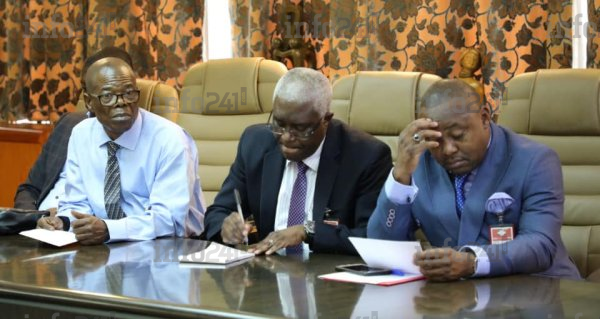 Les responsables de la COSYGA et du CGSL paraphant l’accord de trêve avec le gouvernement