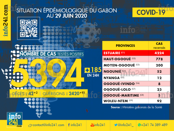 Coronavirus au Gabon : deux nouveaux décès de patients et déjà 5 394 cas Covid-19 ! © 2020 D.R./Info241