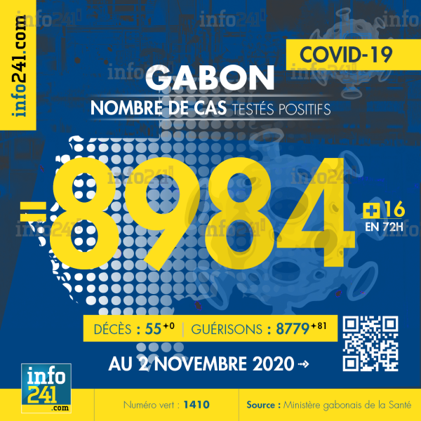 Alors que le Gabon n’a jamais déconfiné sa population depuis la survenue de la pandémie le 12 mars, le pays compte désormais moins de 150 cas actifs. Selon le décompte effectué lundi soir par les autorités sanitaires, seuls 16 cas ont été enregistrés ces 72 dernières heures dans 3 des 9 provinces du pays. Au 2 novembre, le pays compte 8 984 cas confirmés, 8 779 guérissions contre 55 décès.