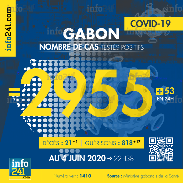 Parallèlement à la propagation du virus dans le Grand Libreville, le Gabon a enregistré également hier 17 nouveaux patients guéris de l’épidémie. Ce qui porte à 818, le nombre de personnes déclarées guéries. Au 4 juin, il y a au Gabon 2 955 cas confirmés d’infection au Covid-19, 21 personnes qui en sont décédées et 818 guérisons. Il y a actuellement 99(+0) patients hospitalisés dans le pays dont 15 (+0) en réanimation.