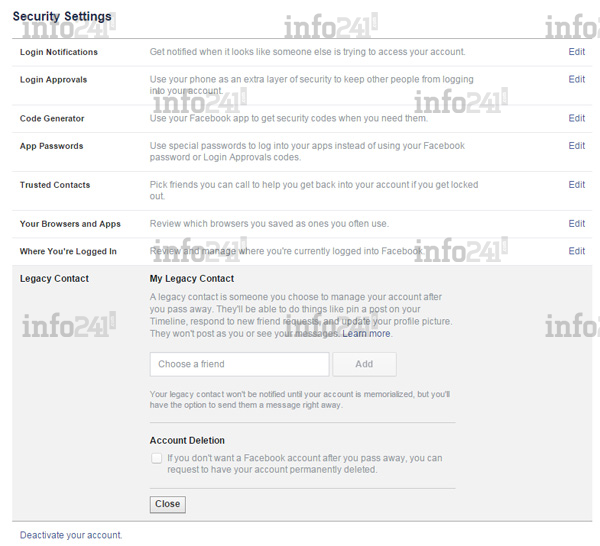 C’est maintenant une troisième solution qui fait surface, donner le contrôle du compte à une personne désignée au préalable dans les paramètres. C’est dans la partie Sécurité de ces fameux paramètres que vous trouverez cette nouvelle option appelée « Legacy contact » (soit Contact héritier) grâce à laquelle vous pourrez désigner un héritier qui s’occupera de votre compte.