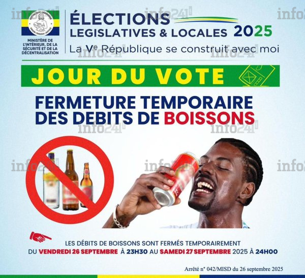 À la veille des élections législatives et locales prévues ce samedi 27 septembre, le ministère de l’Intérieur, de la Sécurité et de la Décentralisation a annoncé ce vendredi la fermeture temporaire des débits de boisson sur l’ensemble du territoire national. Cette mesure vise à assurer le bon déroulement du scrutin et à préserver l’ordre public, selon un communiqué officiel parvenu à Info241.