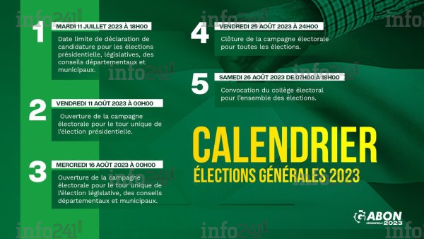 Selon ce calendrier électoral, la date limite de dépôt de candidatures pour la présidentielle gabonaise est fixée au 11 juillet prochain. La campagne elle, débutera le 11 août pour s’achever le 25 août à minuit. Le collège électoral sera quant à lui convoqué le samedi 26 août de 7h à 18h pour élire le futur président du Gabon mais aussi les différents députés et conseillers municipaux et départementaux. Trois élections couplées à unique tour. La course aux élections est donc ouverte !