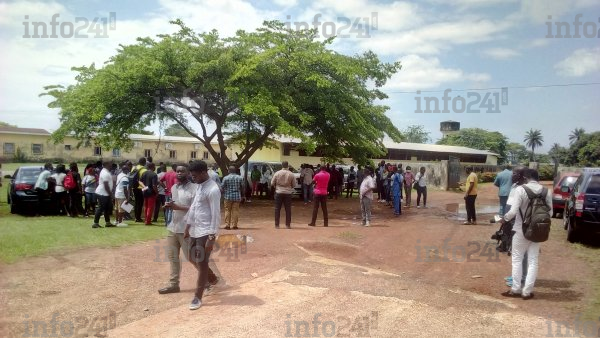 Des enseignants en rassemblement devant un établissement de la capitale économique gabonaise