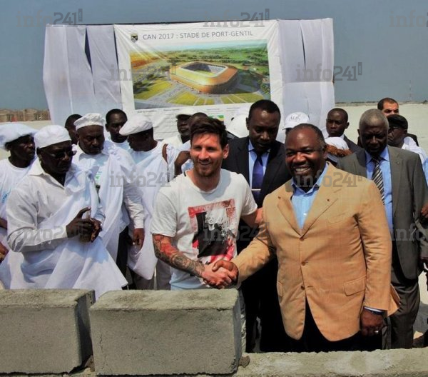 Le président Gabonais Ali Bongo conduisant Lionel Messi sur le chantier du stade de Libreville © 2015 D.R./Info241