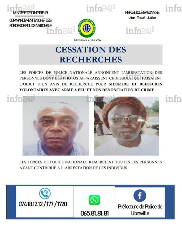 L’on en sait désormais un peu plus sur le drame de Malibé 2 de ce jeudi. Le couple de fugitifs dont l’homme, Nicolas Elé, a tué de sang froid de plusieurs coups de fusil un jeune homme à l’aide de son calibre 12 après avoir tiré sur une militaire à la retraite, Line Yezengoye Ibangot, dans la zone du Cap-Estérias du Grand Libreville. Après moins de 24h de traque, le couple de sexagénaire a été mis aux arrêts par la police qui avait lancé le jour du drame un avis de recherche.