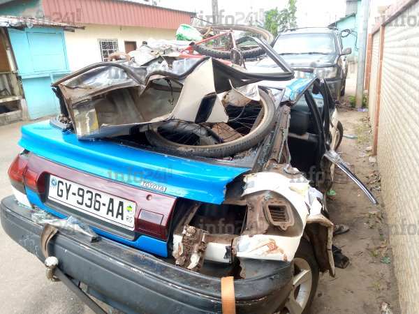 Malheureusement un ressortissant malien à bord de sa bicyclette, a lui également été percuté par le taxi. Il serait sorti de l’incident avec plusieurs blessures mortelles au niveau du cou. Des sources estiment qu’il aurait perdu la vie après son transfert aux urgences dans une structure sanitaire de la place, ce qui alourdirait encore le bilan de cet accident. « Quand le choc a eu lieu il y a eu un mort sur-le-champ. C’est un des deux garçons qui étaient à bord du taxi. Un autre ayant un tee-shirt rouge au sol est finalement mort à l’hôpital », explique à Info241 Rebecca Mayinou, une riveraine qui a assisté à la scène.