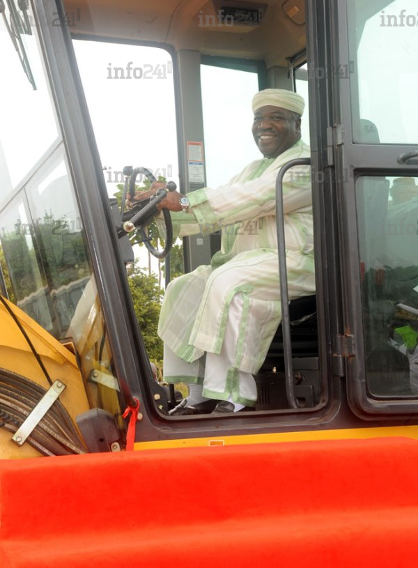 Ali Bongo en visite de ces énièmes chantiers entamés et financés par les caisses de l’Etat depuis 2009.