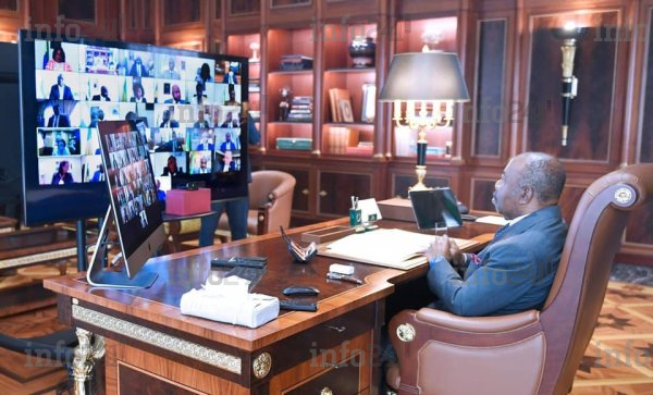 Derrière son ordinateur, Ali Bongo a présidé hier cet énième conclave virtuel avec son gouvernement