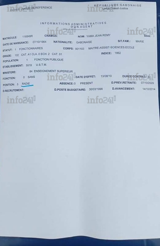 Dénonçant une radiation illégale, Nathalie Sima Eyi a notamment évoqué le statut particulier des personnels enseignants de l’Enseignement supérieur qui exige la tenue préalable d’un conseil d’université avant toute radiation. De plus, l’article 134 de la loi n°8/91portant statut général de fonctionnaires recommande la tenue d’un Conseil de discipline. Des préalables qui n’ont pas été observé par les autorités gabonaises qui veulent tourner à la hâte la page Yama.