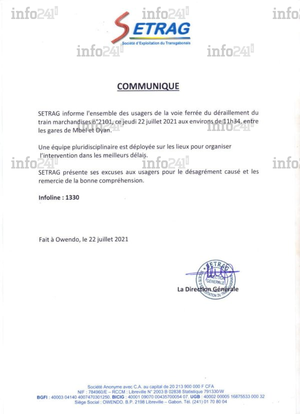 Selon la Société d’exploitation du Transgabonais (Setrag), détenue en partie par l’Etat gabonais et la Compagnie minière de l’Ogooué (Comilog) filiale du géant minier Eramet, « Une équipe pluridisciplinaire est déployée sur les lieux pour organiser l’intervention dans les meilleurs délais ». Un incident qui a ainsi pour conséquence l’interruption du trafic ferroviaire car le pays n’ayant depuis la mise en place du Transgabonais que d’un réseau ferré à une unique voie.