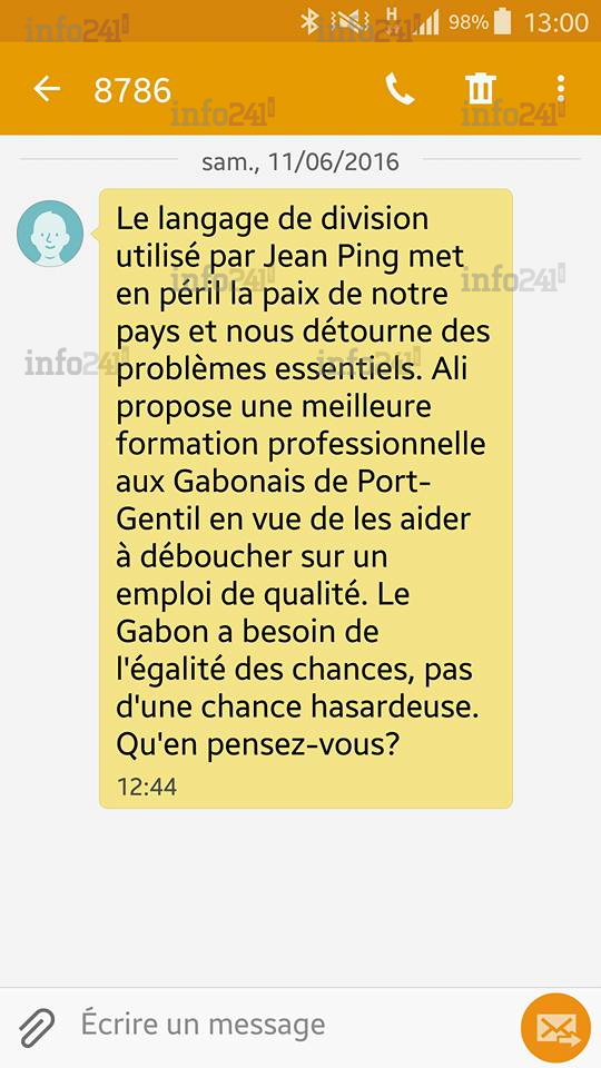 Alors que la campagne pour la présidentielle gabonaise a été fixée du 13 au 26 août prochains, l’opérateur mobile Airtel Gabon a surpris ses abonnés ce samedi par l’envoi d’un SMS politique, les invitant à préférer le candidat sortant Ali Bongo à son challenger Jean Ping.