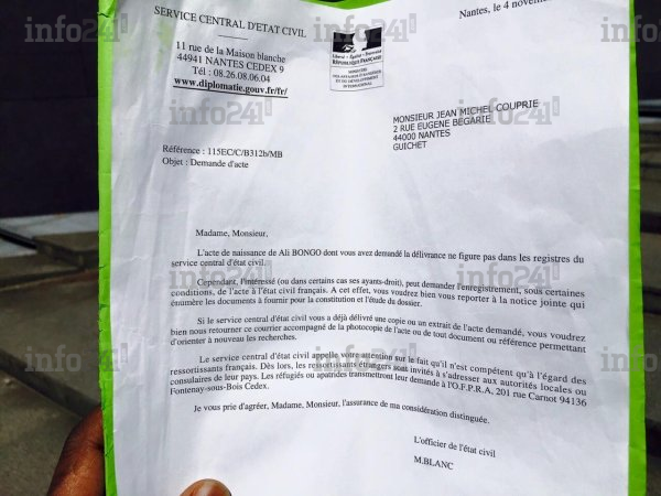 Cet acte français dont personne n’a jamais fait usage, même le principal intéressé Ali Bongo, laisse ainsi planer l’ombre d’une main « blanche » de la Françafrique pour sortir le camarade Bongo du guêpier dans lequel il est fourré depuis 2009. D’autant que des courriers existent provenant de cette même administration sur l’inexistence du dudit document en novembre et en février derniers.