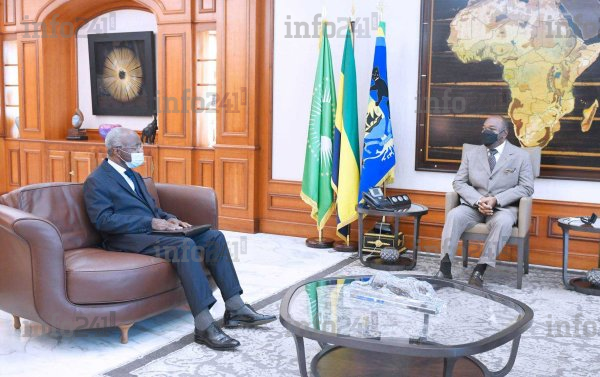 Ali Bongo et Jean Eyeghe Ndong au palais présidentiel le 9 juin 2021 avant son ralliement