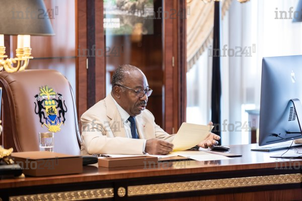 Après plusieurs semaines de silence radio, Ali Bongo était devant son ordinateur ce mardi pour une visio-conférence avec des représentants de l’Union Africaine. L’entretien virtuel avec 5 envoyés spéciaux du président de l’institution africaine, Cyril Ramaphosa, a porté sur la mobilisation du soutien international aux efforts de l’Afrique pour relever les défis économiques et sociaux, inhérents à la pandémie de la Covid-19.