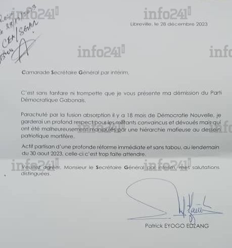 Après 18 mois au PDG, Patrick Eyogo Edzang quitte le navire en pleine tempête ! © 2023 D.R./Info241