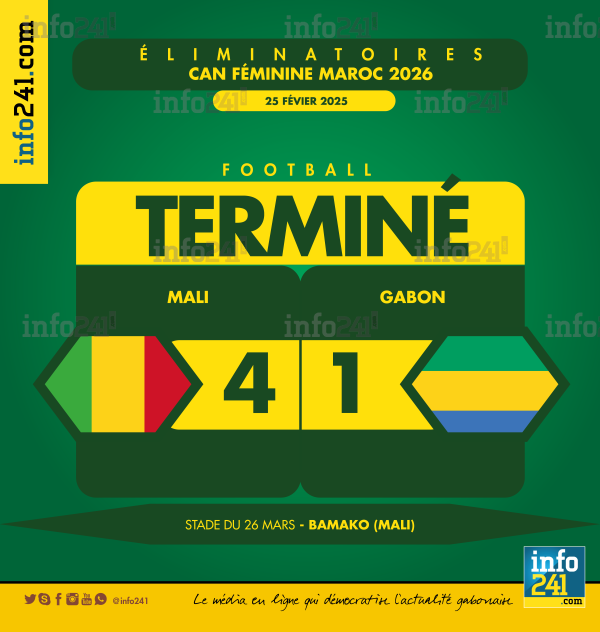 L’espoir d’une qualification pour la CAN Féminine Maroc 2026 s’est envolé pour les Panthères du Gabon après une nouvelle défaite face au Mali (4-1) ce mardi. Déjà largement battues à domicile lors du match aller à Franceville (0-6), les Gabonaises n’ont pas su renverser la tendance lors de cette manche retour à Bamako, concédant une élimination logique face à une équipe malienne bien supérieure.