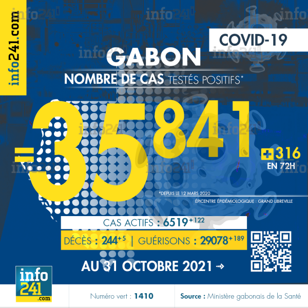 Coronavirus : le bilan épidémiologique du Gabon au 31 octobre 2021 © 2021 D.R./Info241
