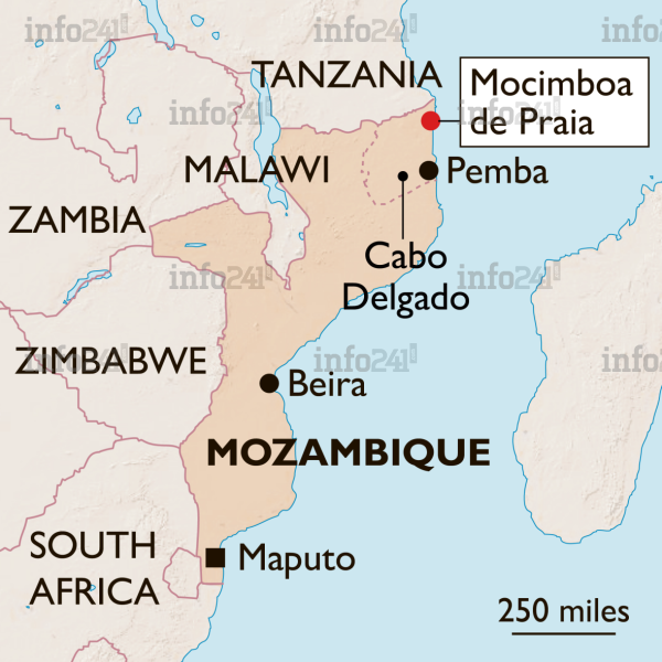 Le port de Mocimboa da Praia, situé dans la province de Cabo Delgado, se trouve à environ 80 km au sud de la péninsule d’Afungi qui abrite d’importantes installations pour le développement de gaz naturel liquéfié, l’un des plus gros investissements en Afrique auquel participe le groupe français Total.
