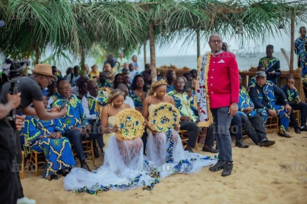 L’union coutumière a été célébrée en présence des deux familles, dans le respect des traditions locales. L’un des moments les plus marquants fut la demande symbolique de mariage formulée par Anges Kevin Nzigou à Nora Kassa, sœur jumelle de la mariée. Micro en main, l’homme politique s’est avancé timidement et a lancé : « Nora, acceptes-tu que je prenne pour épouse ta sœur ? », en présentant un billet de banque en guise d’offrande rituelle.
