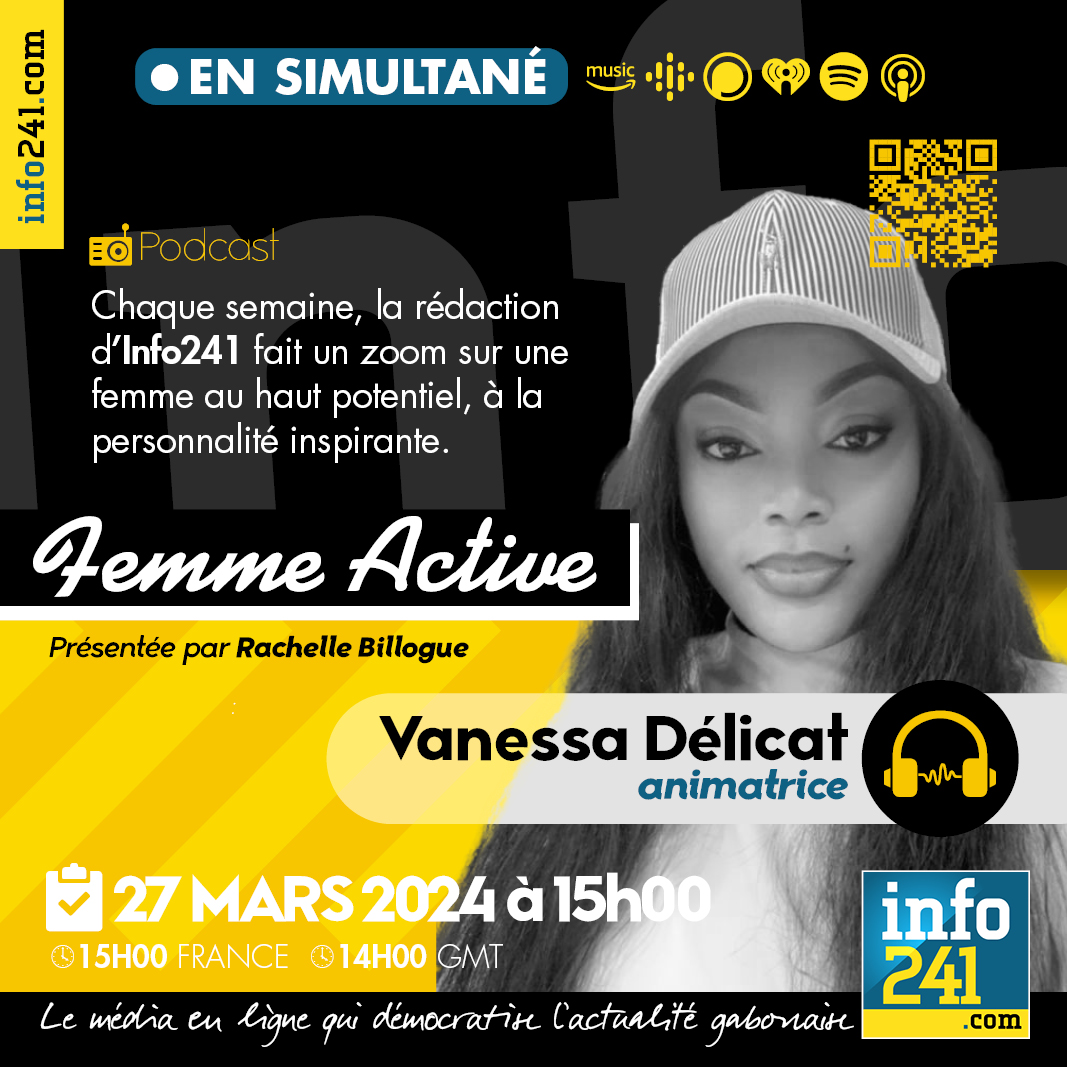 « Femme active » #10, l’émission qui fait un zoom chaque semaine sur une femme au haut potentiel et à la personnalité inspirante. Notre invitée sera Vanessa Délicat, animatrice radio et télé depuis près de 10 ans. Elle est la présentatrice vedette de l’émission Midi 1ère sur Gabon 1ère. Nous évoquerons avec elle son parcours et ses secrets de réussite.
