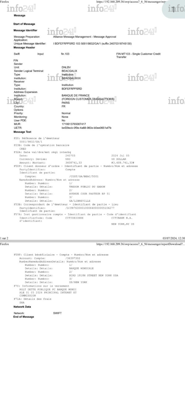 Selon le communiqué d’hier du cabinet du ministre des Comptes publics Charles Mba, la direction générale de la comptabilité publique et du trésor, a déjà entamé le paiement des créances impayées. « Le retard observé dans le règlement des échéances dues à la Banque mondiale est lié à des raisons techniques, qui n’ont pas permis d’honorer la totalité des engagements à la date du 30 juin 2024 », précise le document. Selon nos informations, ce paiement n’a été fait que ce mercredi en raison de blocages observés à la BEAC contre le Gabon.