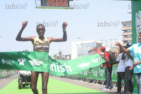 L’épreuve du marathon féminin a souri à la Kenyane Kigen Joan (3e marathon du Gabon 2013, 2e marathon de Bournemouth 2014, 5e marathon de Nairobi 2012), qui avait déclaré en conférence de presse dimanche, qu’elle allait remuer ciel et terre pour s’imposer. Même si elle s’est écroulée sur la ligne, elle a confirmé ses dires.