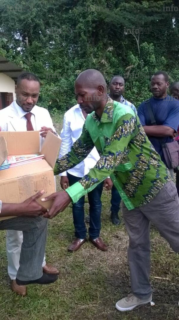 Joseph remettant le cartons des livres scolaires au directeur de l’école
