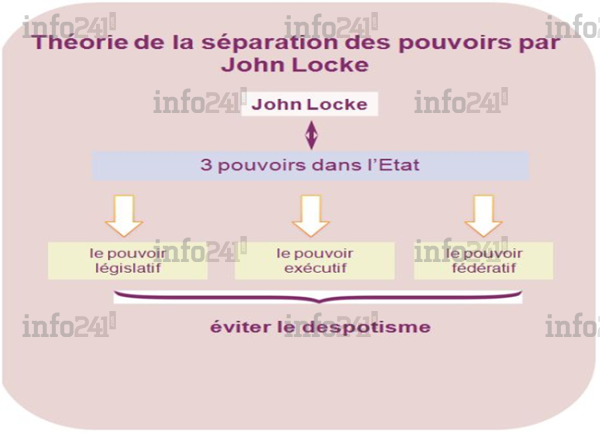 En théorisant, sur cette base, la séparation des pouvoirs, Locke identifiait 3 pouvoirs que sont l’exécutif, le législatif, mais sans le judiciaire, car son 3ème pouvoir il le voyait dans la conduite des affaires internationales, en le désignant « pouvoir fédératif ».