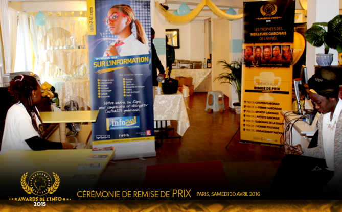 Revivez en images la cérémonie de remise de prix des Awards de l’info™ 2015 qui a récompensé samedi à Paris, les 7 meilleurs gabonais de l’année 2015. Crédit photo : Kadei Vox.