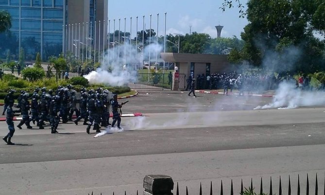 Syndicalistes et élèves gabonais étaient hier dans les rues de la capitale gabonaise pour porter un message unique au gouvernement : la prise en compte de leurs revendications. Pour les premiers, la revalorisation de leurs salaires et pour les seconds, la reprise des cours. Ils ont été dispersés comme il est désormais de coutume par les forces de polices qui n’ont pas hésité à lancer gaz lacrymogènes et brutalité policières.