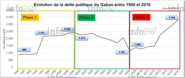 Evolution de l’encours de la dette publique du Gabon entre 1990 et 2016
