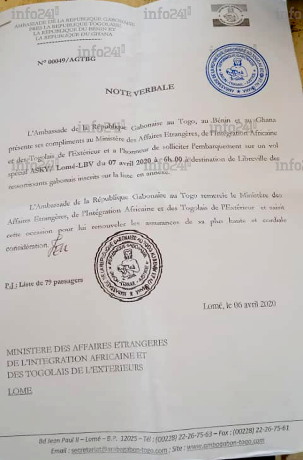 La note verbale de l’ambassade du Gabon au Togo