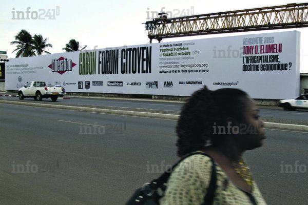 Une banderole géante érigée à Libreville durant ce forum