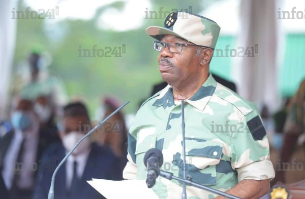 Ali Bongo, le 10 octobre lors d’une cérémonie militaire de commémoration du saint patron des parachutistes © 2020 D.R./Info241