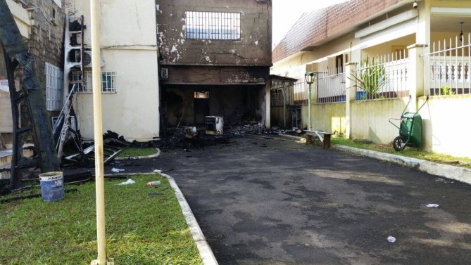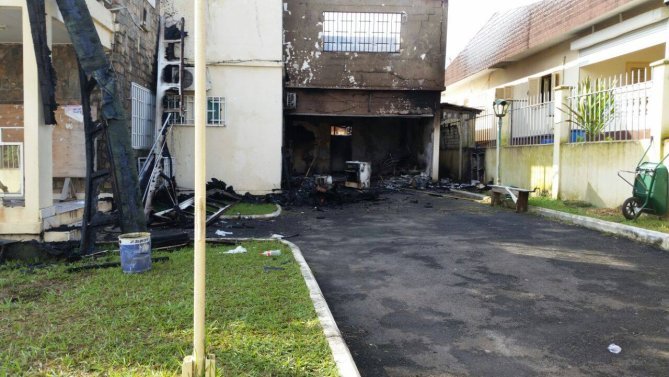 Les images de l’ambassade du Bénin au Gabon incendiée