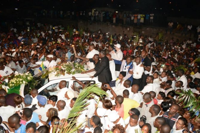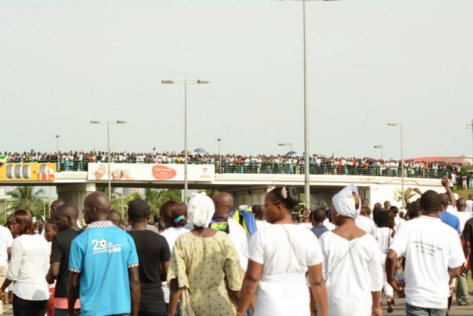 Ce mardi 28 avril restera à jamais dans les annales politiques du Gabon. Une marrée humaine a pris d’assaut l’aéroport Léon Mba de Libreville pour accueillir dans la dignité, la dépouille de l’opposant André Mba Obame décédé le 12 avril à Yaoundé. Un accueil en fanfare qui s’est poursuivi jusqu’en soirée au stade de Nzeng-ayong. Du jamais vu en terre gabonaise !