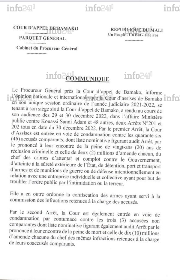 Le communiqué de la décision de la justice malienne
