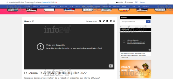Le site de Gabon 1ère handicapé par cette suppression de YouTube