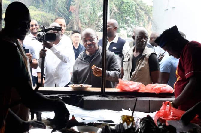 Après une première sortie mardi dans les artères de la capitale gabonaise, Ali Bongo a réédité l’exploit ce samedi avec une autre virée dans le Grand Libreville. Cette fois, le probable candidat du PDG qui multiplie les opérations de séduction ces derniers jours, n’a pas résisté à l’envie de déguster des coupés-coupés comme le montrent ces images qui ne manqueront pas de faire réagir.