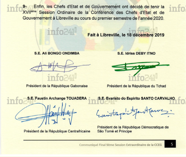 Le 9e sommet de la CEEAC aurait pu être une parfaite réussite du point de vue communicationnel si et seulement si on n’avait pas demandé à Ali Bongo et à ses hôtes chefs d’états (Idriss Déby du Tchad, Faustin-Archange Touadéra de Centrafrique, Félix Tshisekedi de la RDC et Evaristo Carvalho de Sao Tomé-et-Principe) de signer séance tenante le communiqué final du sommet et surtout si on n’avait pas décidé de le publier tel quel avec les signatures des chefs d’états signataires.
